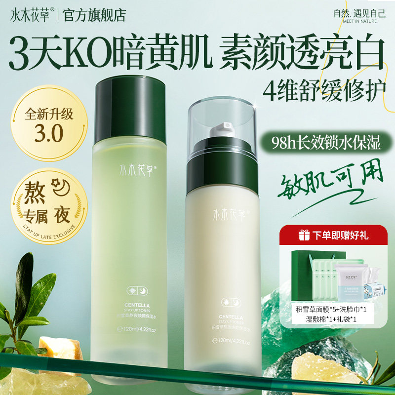 积雪草熬夜水乳套装正品补水保湿控油祛痘男女士护肤品官方旗舰店