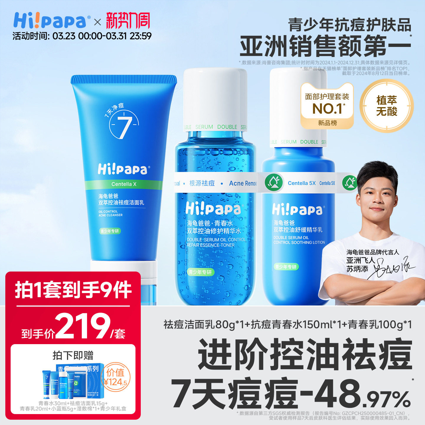 海龟爸爸青少年洗面奶祛痘男女孩青春期护肤套装学生旗舰控油方官