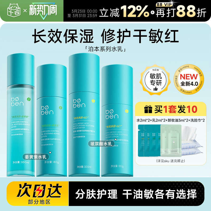 程十安 泊本水乳6d玻尿酸补水保湿套装控油修护乳液波本女士正品