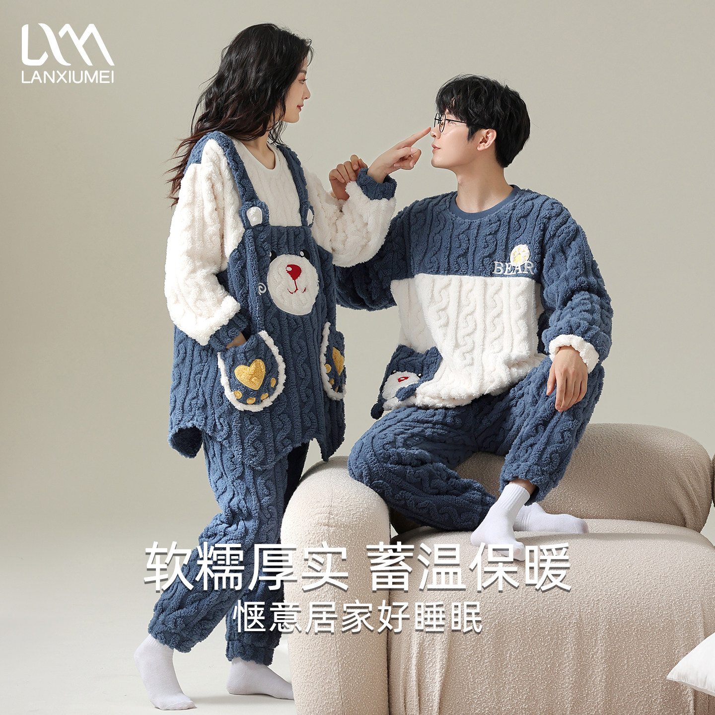 情侣睡衣长袖珊瑚绒秋冬款女士可爱卡通男士法兰绒舒适宽松家居服