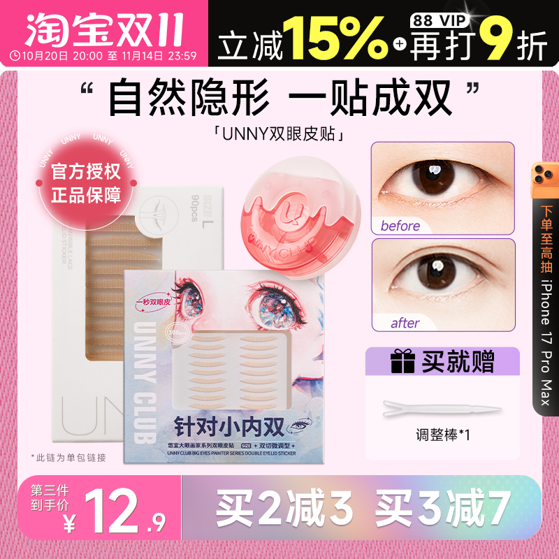 程十安 unny双眼皮贴自然隐形无痕美目贴神器女蕾丝单面专用斜切