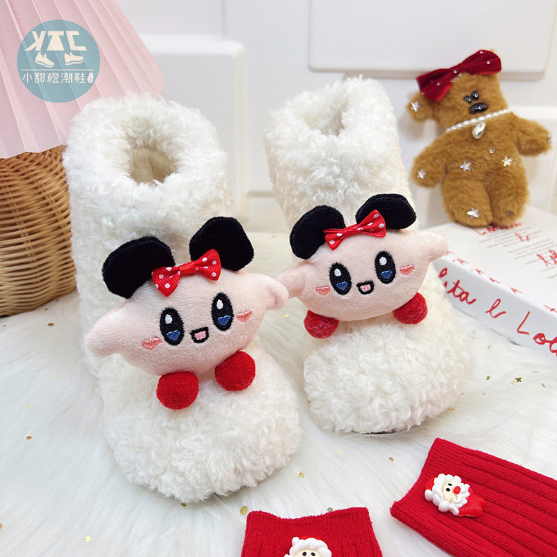 女童卡通毛毛靴韩版毛毛鞋保暖软底套筒韩国新款短靴加绒保暖舒适