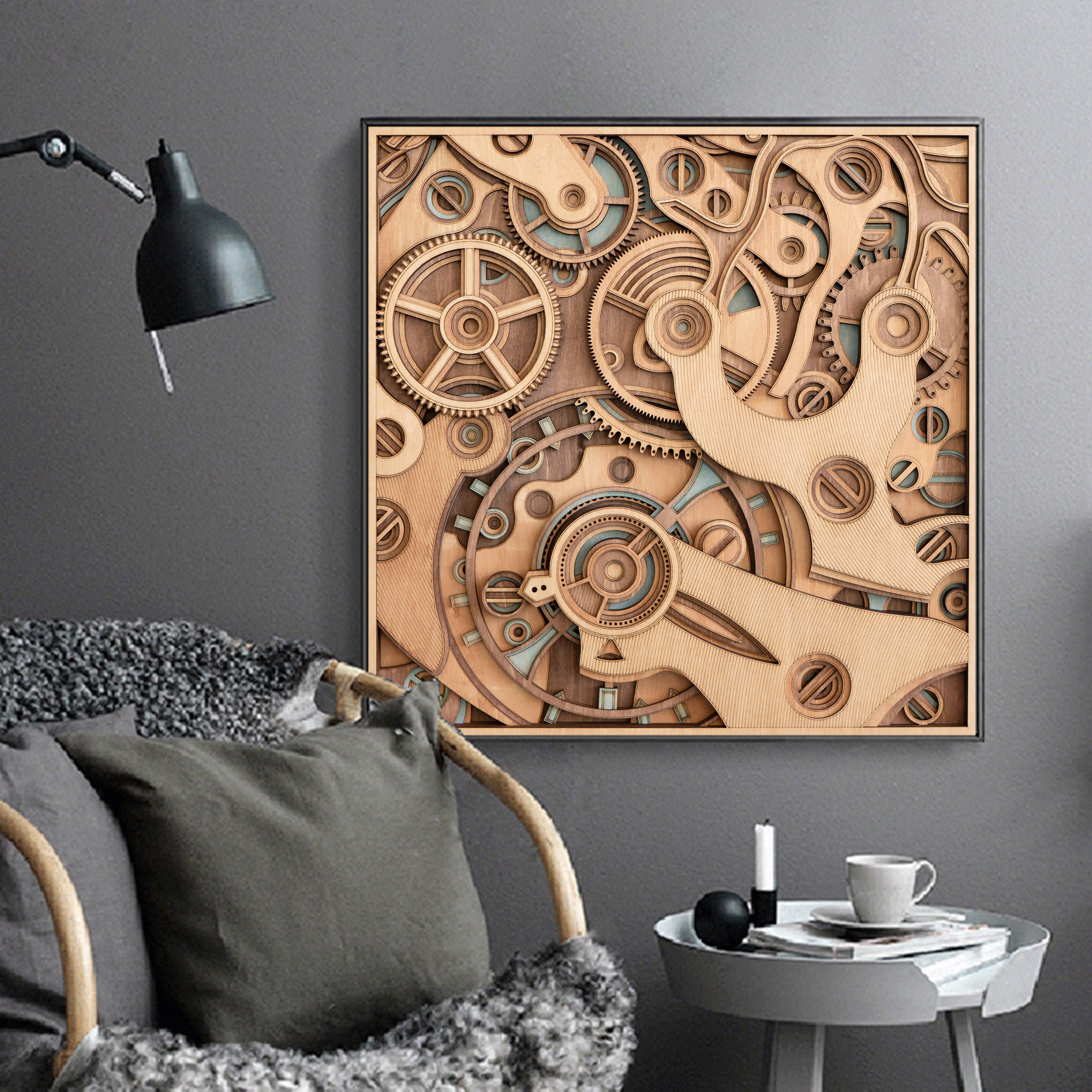 梯木叠雕客厅壁挂装饰壁饰酒吧创意装饰立体木质家装饰品ins背景