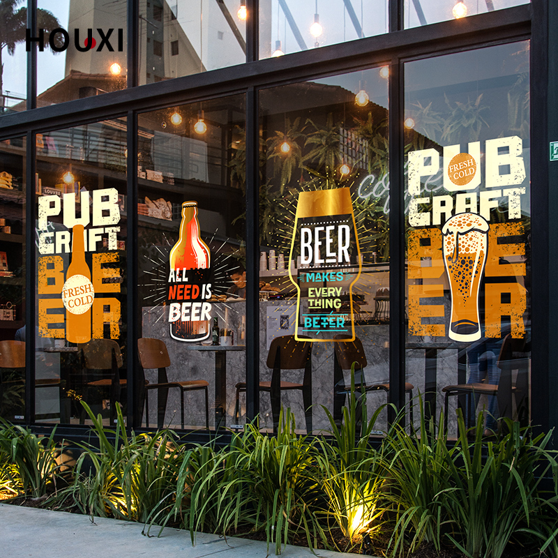 酒吧创意装饰玻璃门贴纸烧烤餐饮小酒馆清吧橱窗布置广告静电贴画