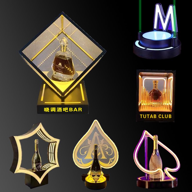 酒吧创意装饰香槟黑桃A酒架KTV专用洋酒展示架发光底座激光酒座