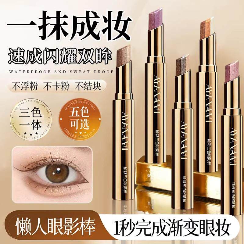 新手闭眼入!一抹三色懒人眼影棒哑光珠光不易晕染日常淡妆眼影笔