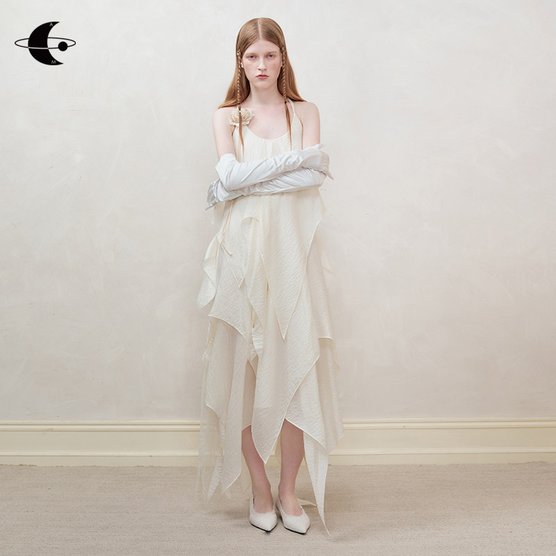 创世纪元【羽衣蹁跹】白色连衣裙长裙女早秋度假裙不规则吊带裙子