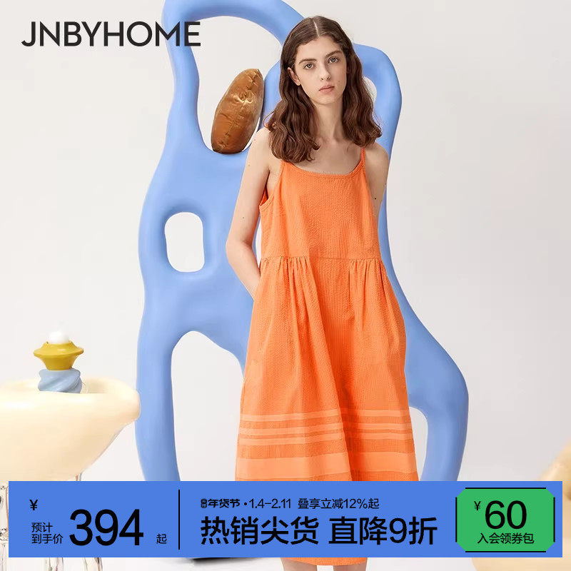 JNBYHOME/江南布衣夏季连衣裙家居服女吊带裙子简约纯色休闲亲子