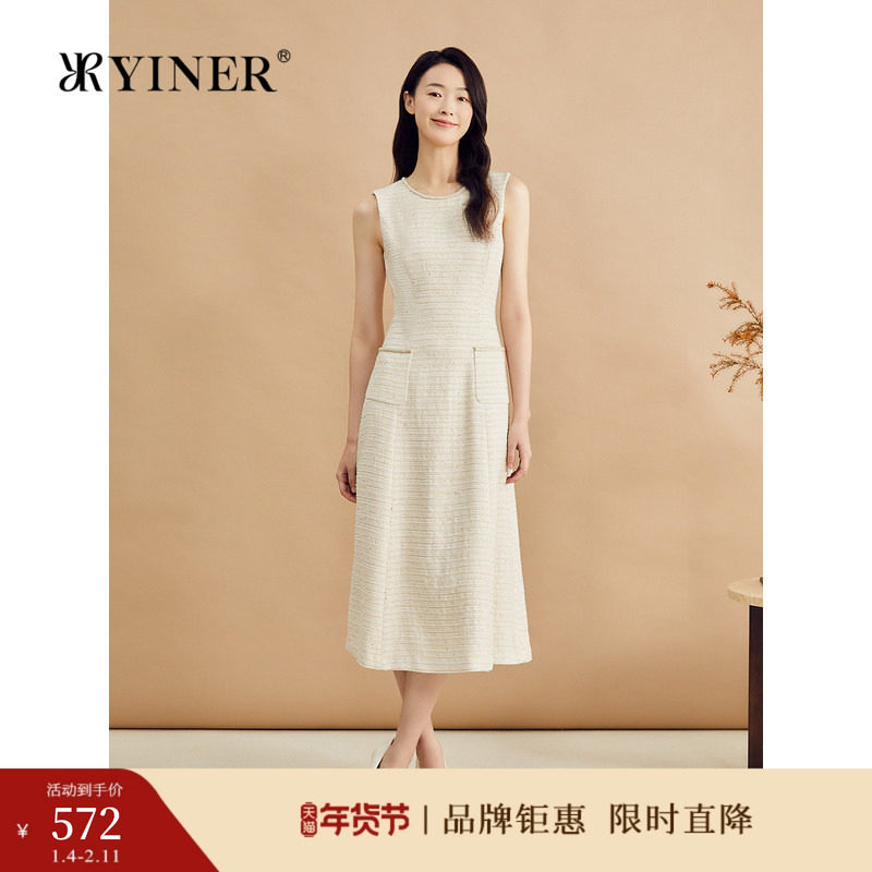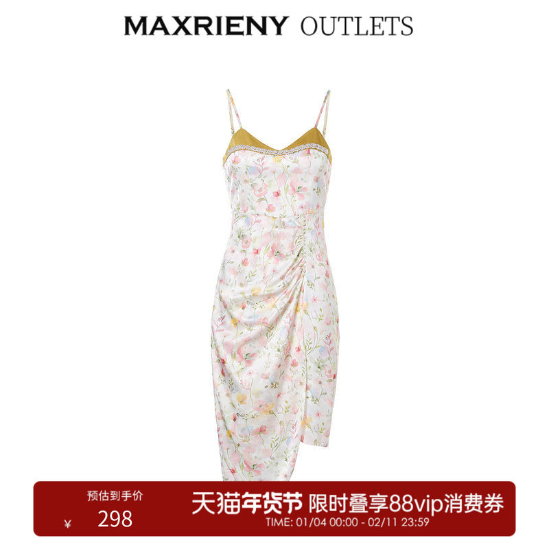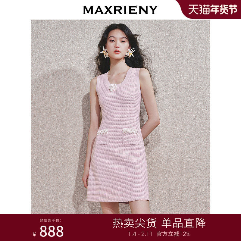 【商场同款】MAXRIENY华夫格肌理感连衣裙无袖挂脖背心吊带裙子