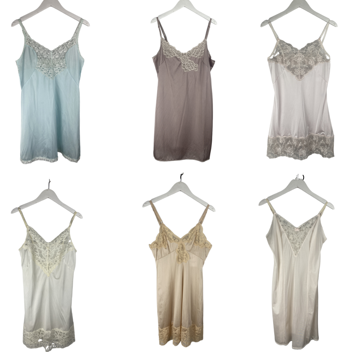 古着vintage复古日系真丝桑蚕丝丝绸纯色蕾丝性感睡衣吊带裙子057