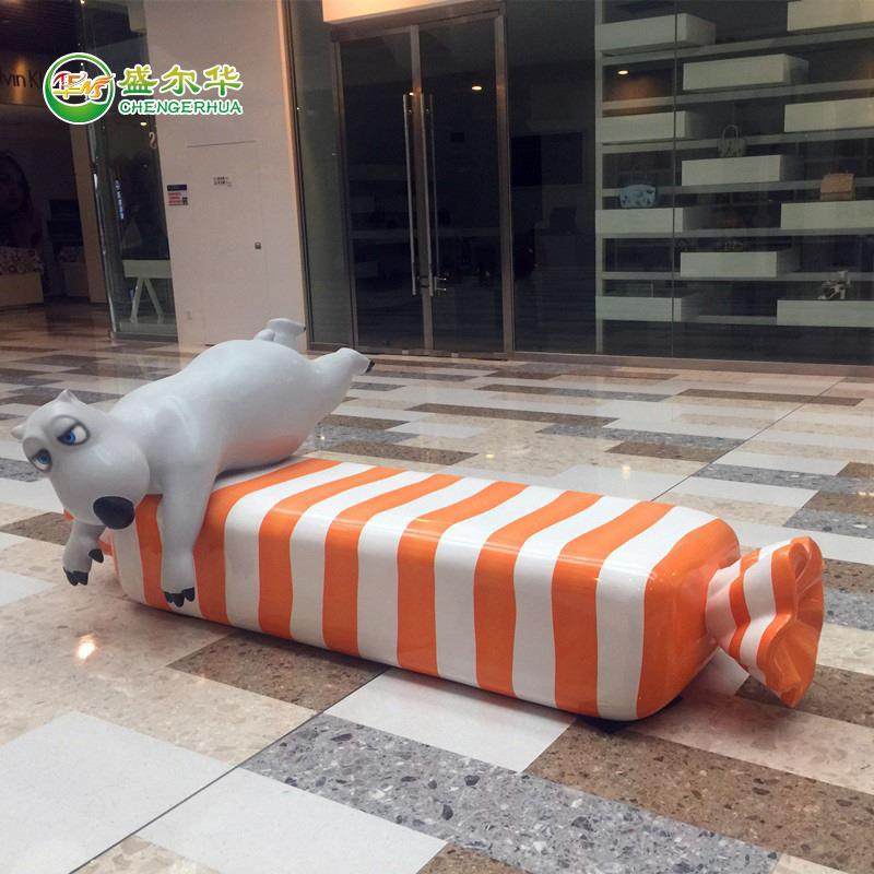 玻璃钢卡通动物雕像休闲椅儿童游乐场商场倒霉熊糖块装饰座椅摆件