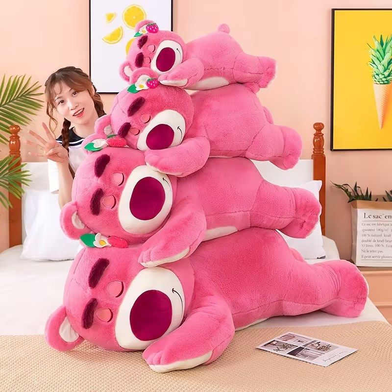 可爱倒霉熊趴姿草莓熊玩偶粉色睡觉抱枕公仔毛绒玩具送生日礼物女