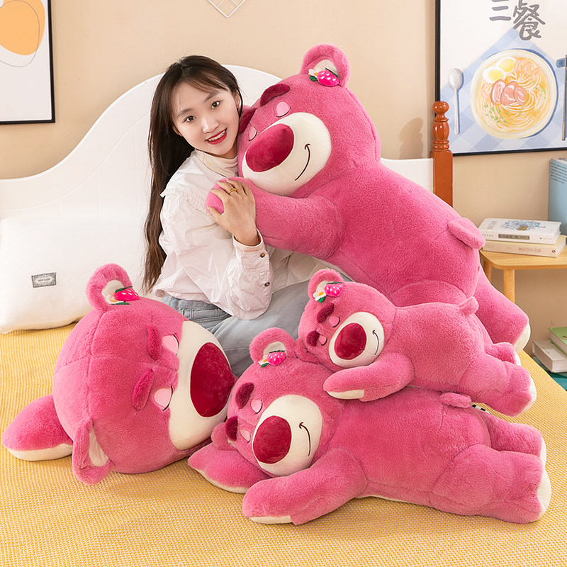 趴款草莓熊粉色毛绒玩具倒霉熊公仔可爱睡觉抱枕靠垫送女生日礼物