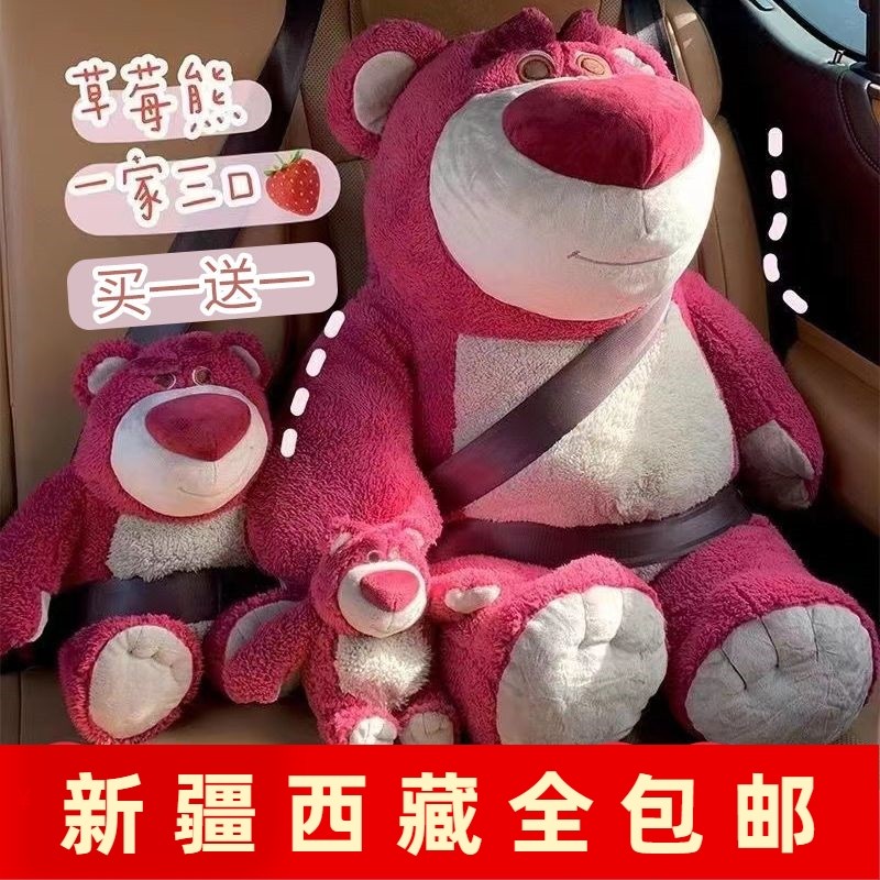 新疆包邮草莓熊毛绒玩具布娃娃公仔草莓倒霉熊玩偶床上陪睡抱枕女