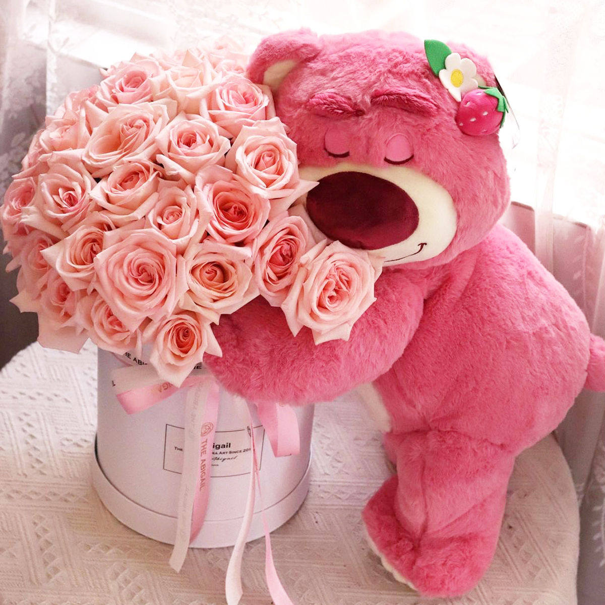 13年老店可f爱倒霉熊草莓熊玩偶粉色睡觉抱枕公仔毛绒玩具生日礼