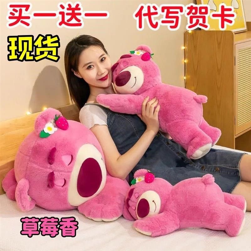 13年老店可爱倒霉熊草莓s熊玩偶粉色睡觉抱枕公仔毛绒玩具生日礼