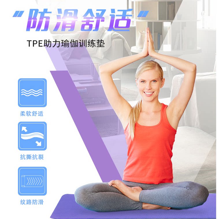 tpe瑜伽垫 防滑初学者加厚环保无味健身垫加宽加长运动仰卧起坐垫