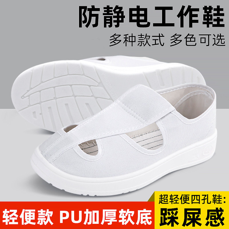 防静电鞋PU软底加厚无尘鞋洁净鞋四孔鞋男女款电子厂工作鞋子透气