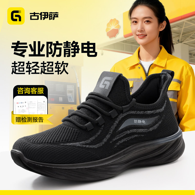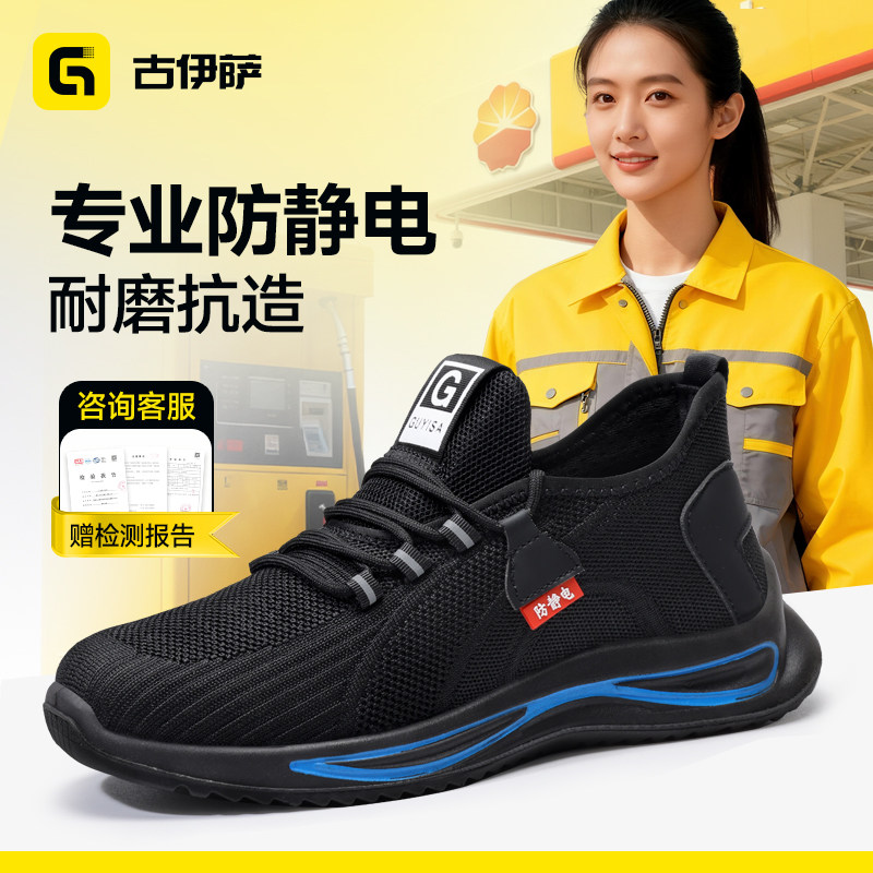 古伊萨防静电鞋女款士夏季透气加厚软底轻便男士中国石化加油站鞋