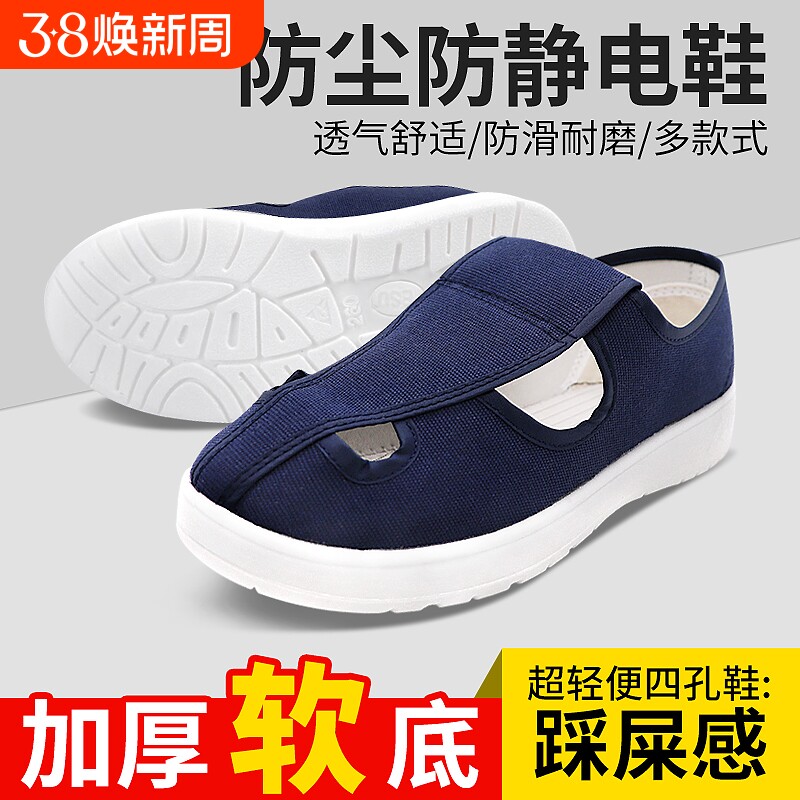 防静电鞋软底加厚无尘鞋电子厂车间专用静电鞋四孔鞋男女款洁净鞋