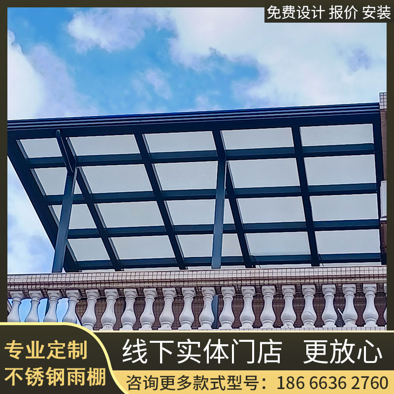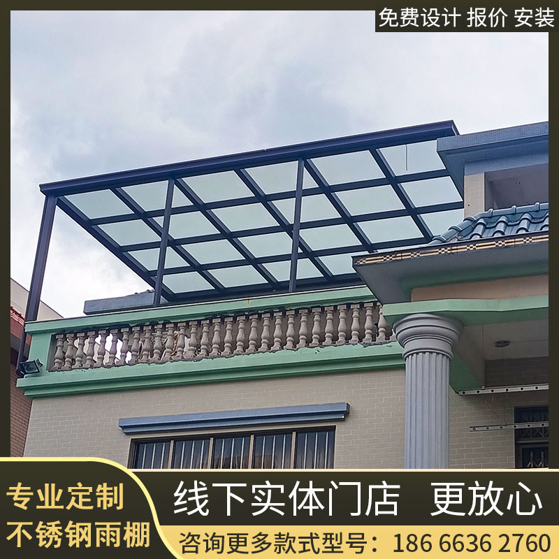 东莞不锈钢雨棚玻璃pc耐力板雨棚别墅阳台遮阳棚阳光房花房安装