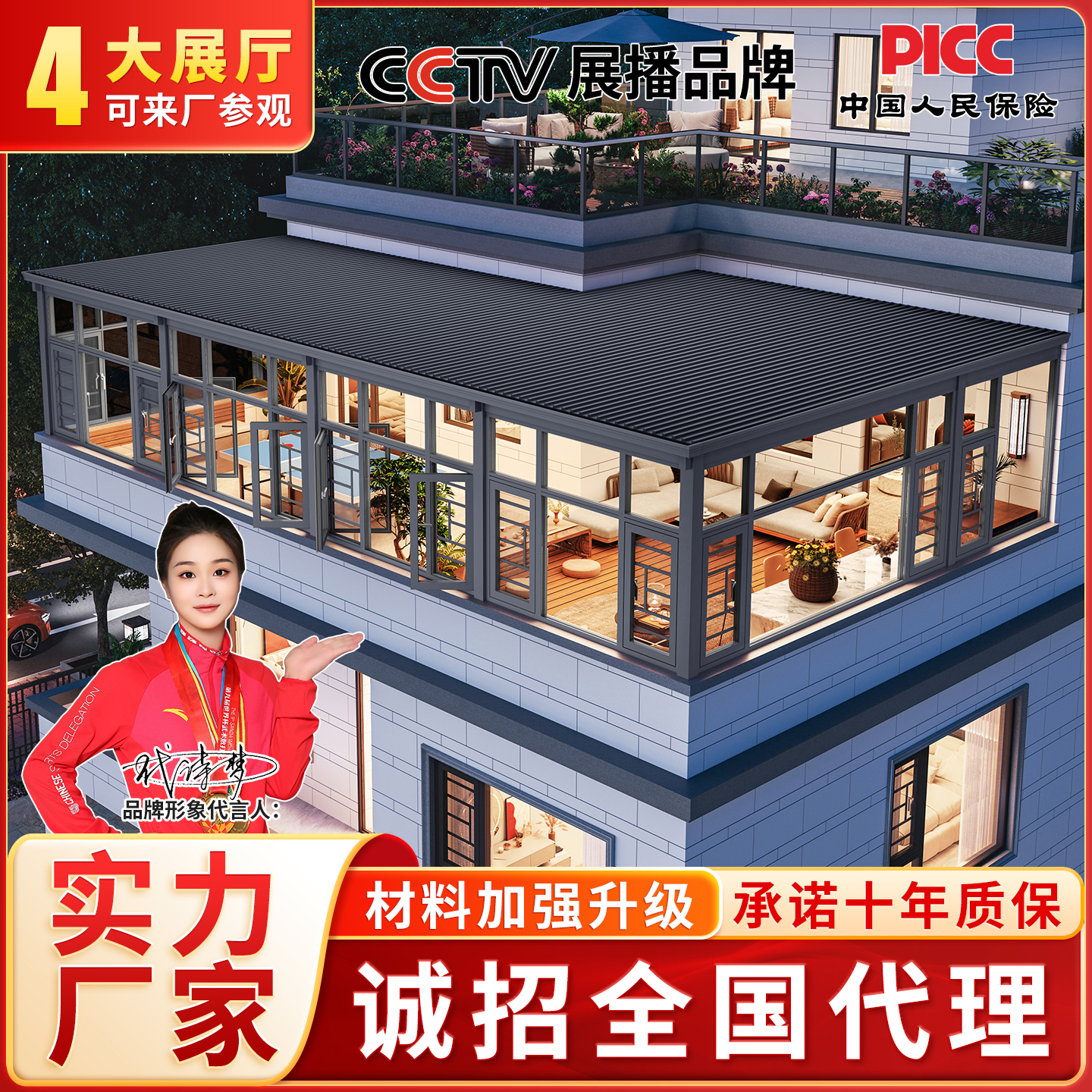 铝合金长城板雨棚别墅顶楼户外庭院防雨阳台遮阳棚隔热防晒阳光房