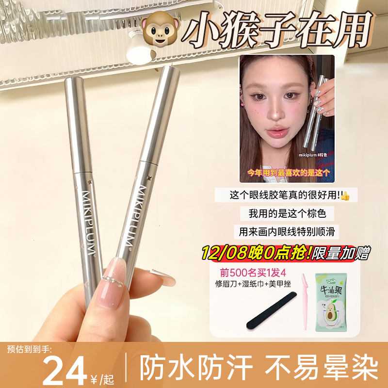 小猴子年度爱用!Mikiplum眼线胶笔防水不晕染液笔卧蚕新手初学者
