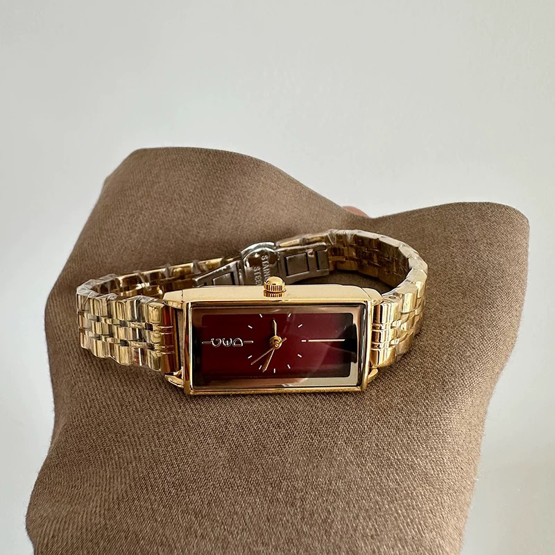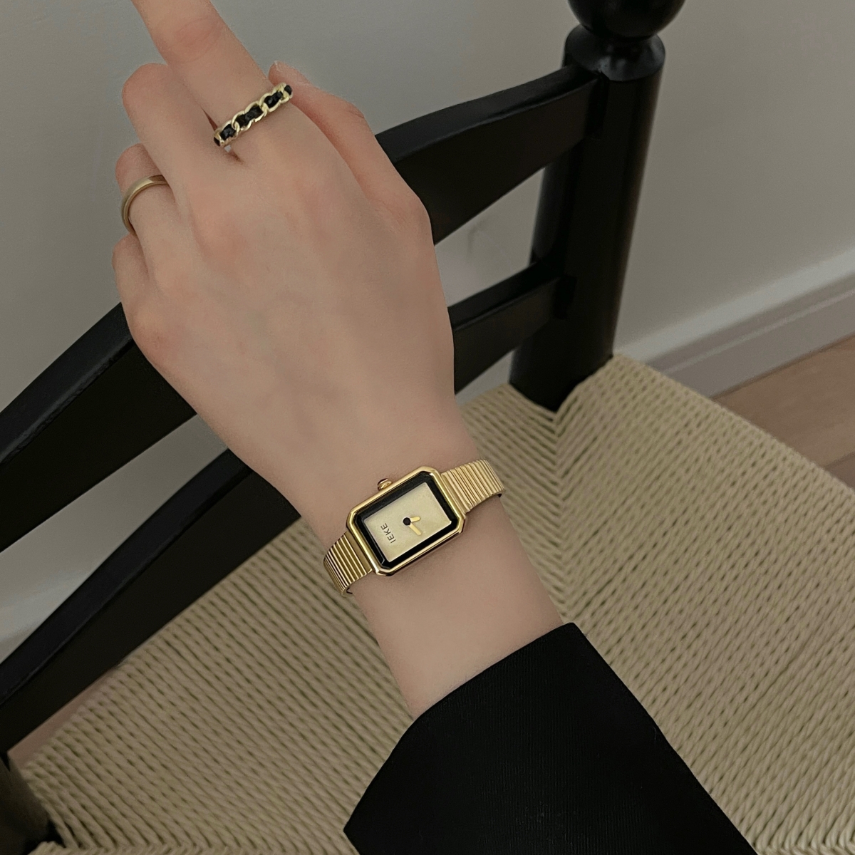 COKLY美拉德风复古小巧表盘金色银色三指针长方形女士石英手表