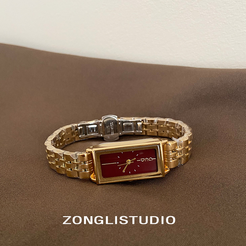 vintage复古中古风重工手表女小众时髦高级感长方形皮带女士礼物
