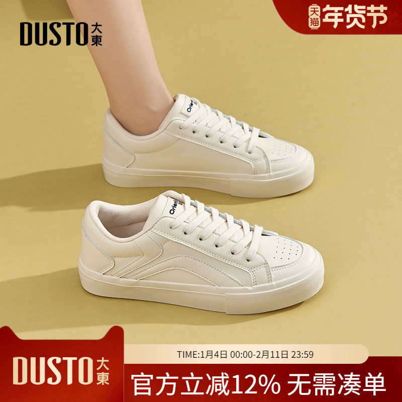 大东小白鞋女鞋2026新款春季休闲运动鞋平底厚底舒适圆头学生板鞋