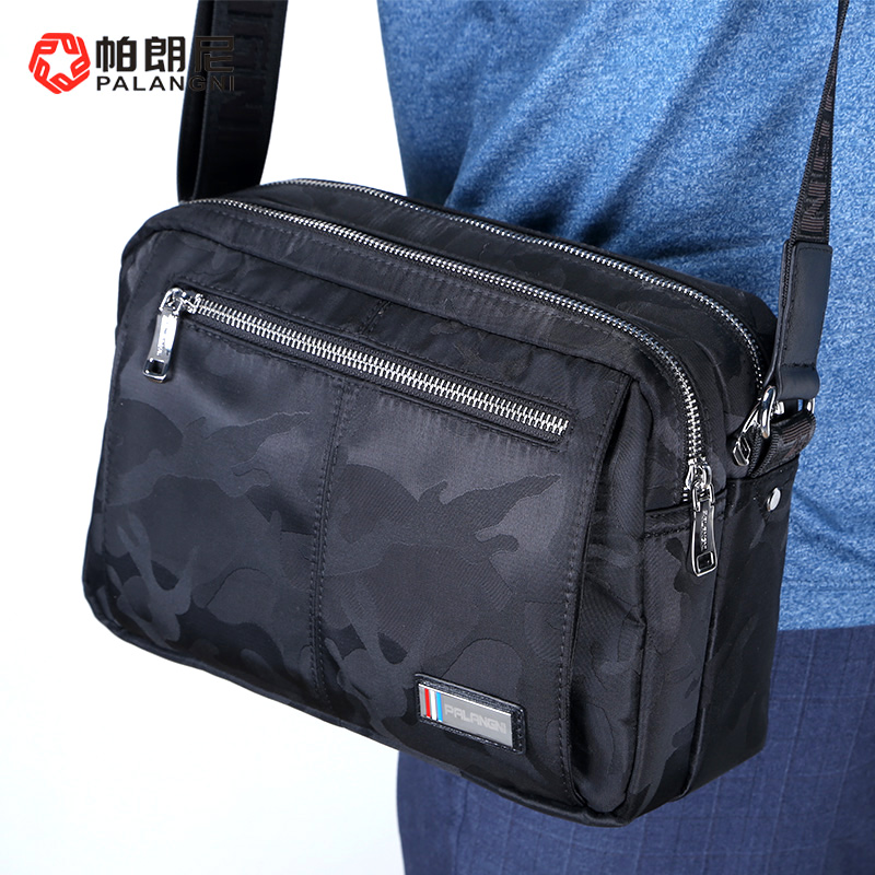 帕朗尼单肩包男帆布潮休闲斜挎包运动牛津纺韩版男士背包潮牌男包