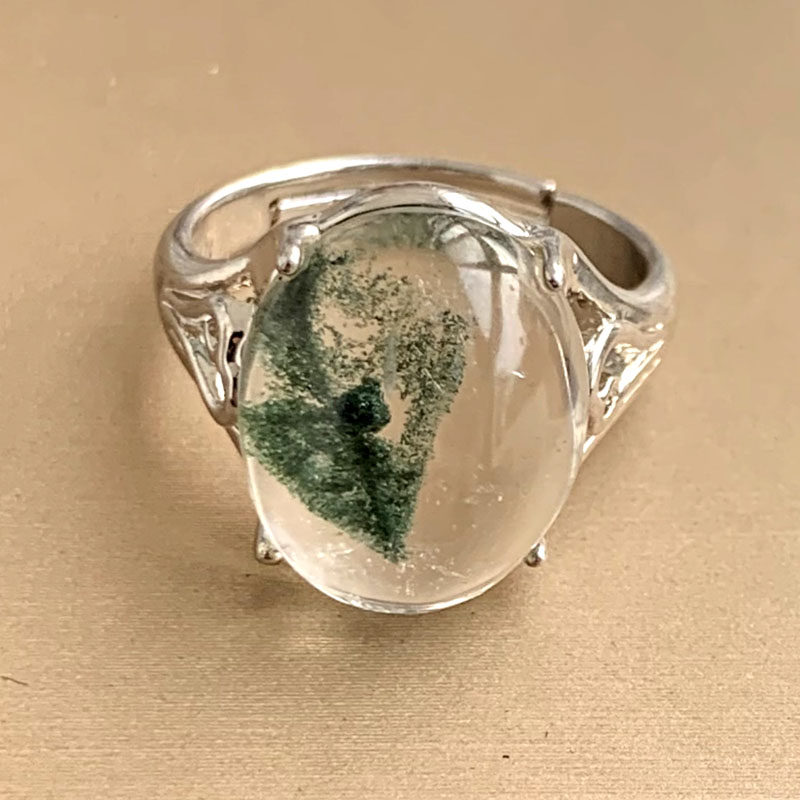 Limpid一物一图天然幽灵水晶半银戒指开口可调节绿幽灵莫奈幽灵