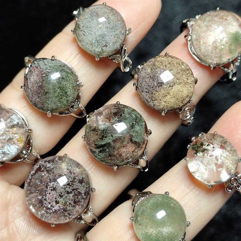 彩幽灵戒指 天然绿幽灵戒指 小森林小地球花幽灵水晶戒指活口女