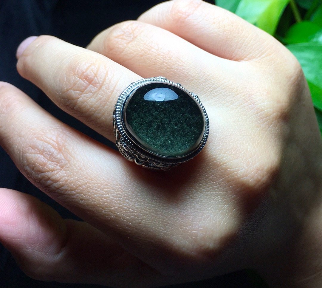 S925银绿幽灵戒指男女款财神聚宝盆指环转运珠招财运水晶精美百搭
