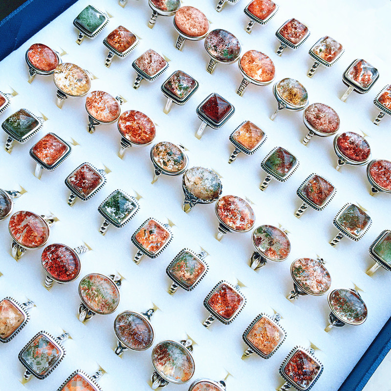 捡漏天然水晶戒指碧玺托帕欧泊月光紫黄水晶天河石绿幽灵南红玛瑙