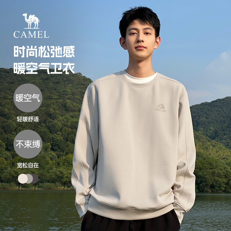 骆驼男装圆领卫衣男春秋季2025情侣套头纯色长袖t恤打底衫上衣男