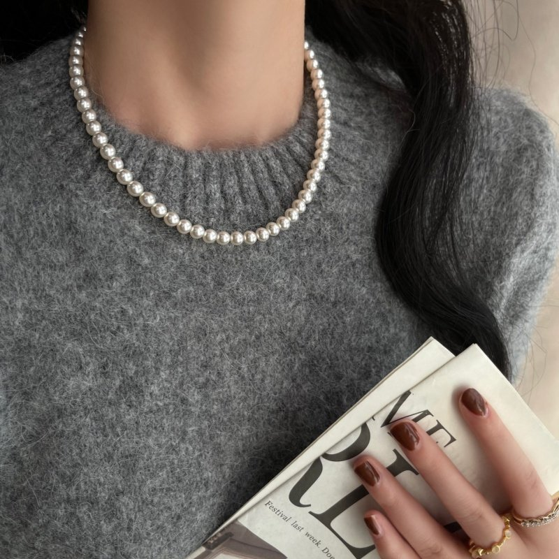 - 日韩国简约甜美百搭生日礼物s925纯银天然珍珠吊坠短款锁骨项链女