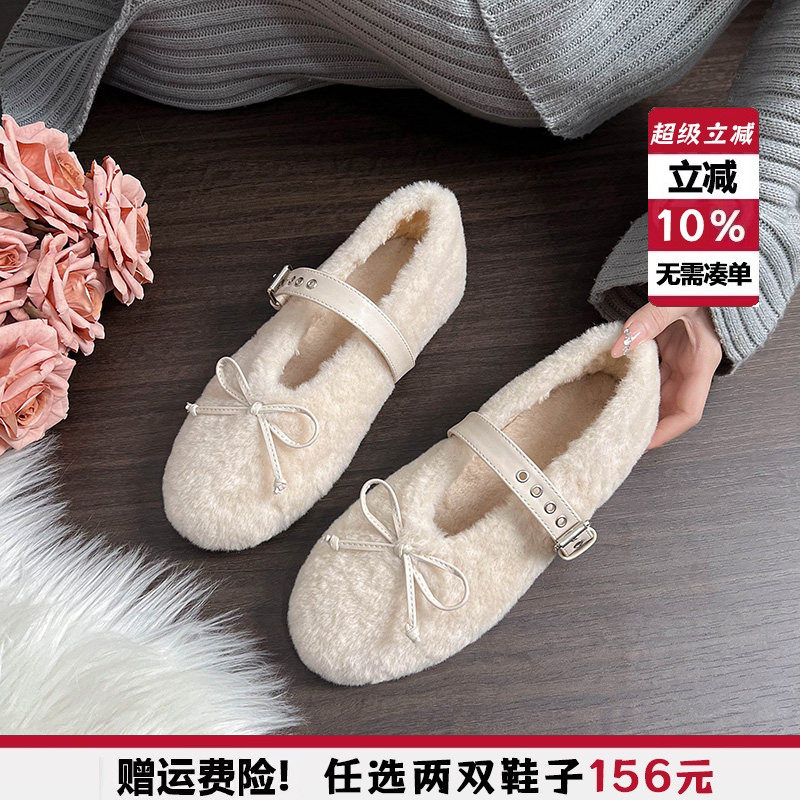 毛毛鞋女秋冬外穿厚底2025年新款加绒豆豆鞋兔毛棉瓢鞋小码33 34