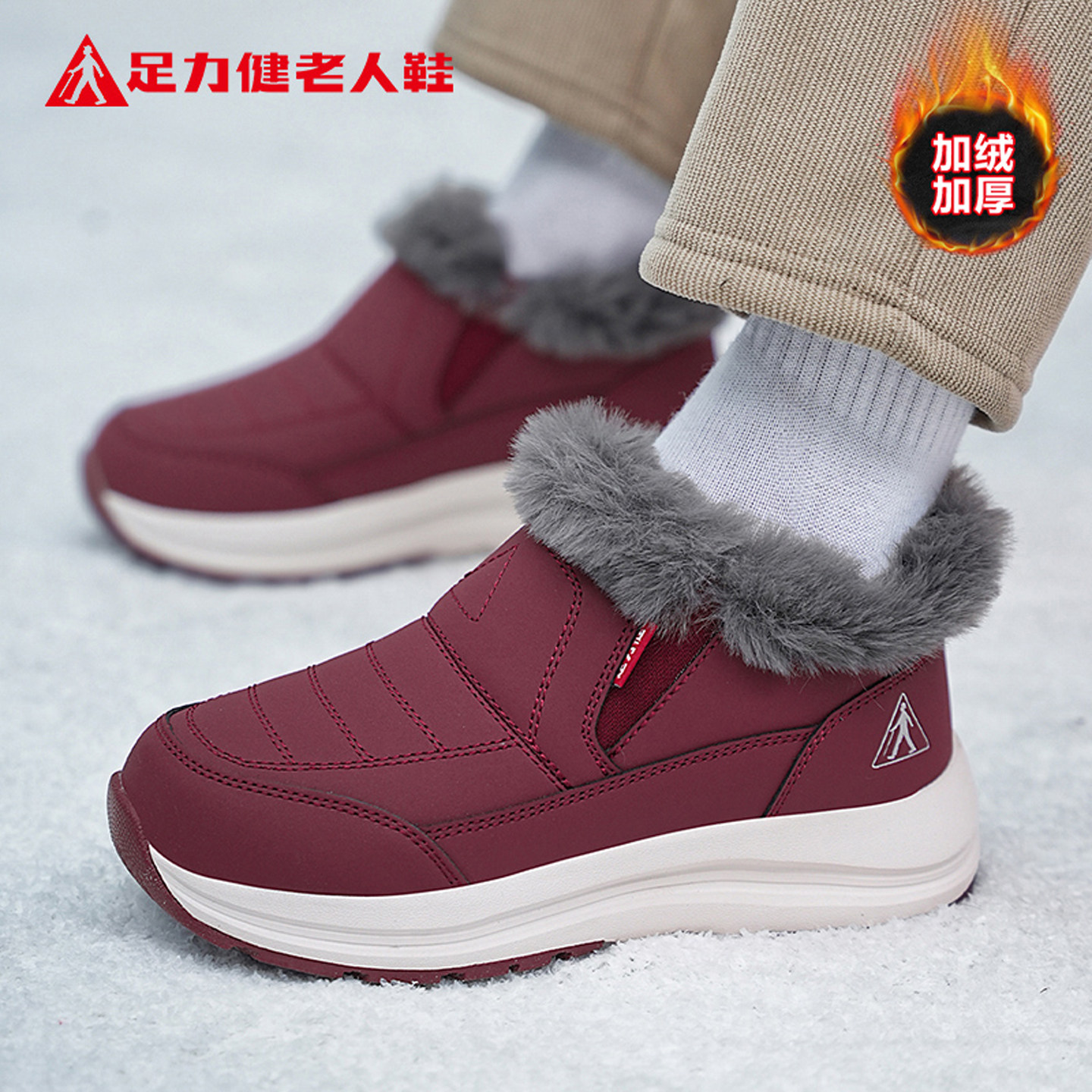 足力健老人鞋正品2025新款冬季棉鞋加绒加厚保暖兔毛鞋女款雪地靴