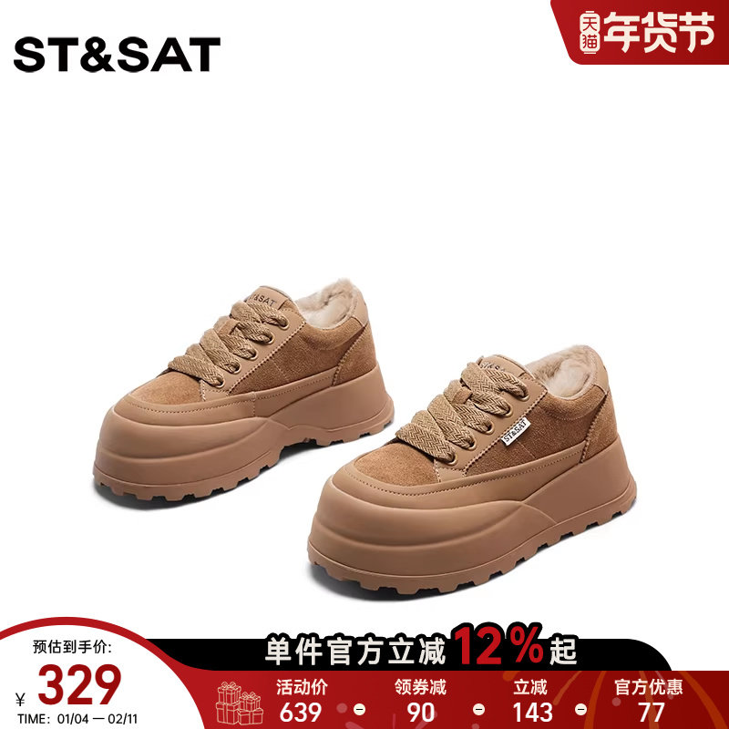 星期六女鞋德训鞋女款2025新款冬季加绒厚底增高兔毛复古运动板鞋