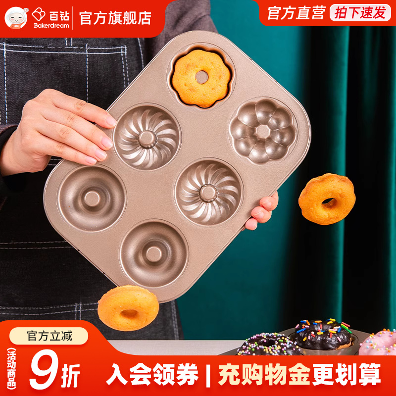 百钻6连花型甜甜圈模具圆形模型家用烤箱做面包蛋糕烘焙烤盘商用