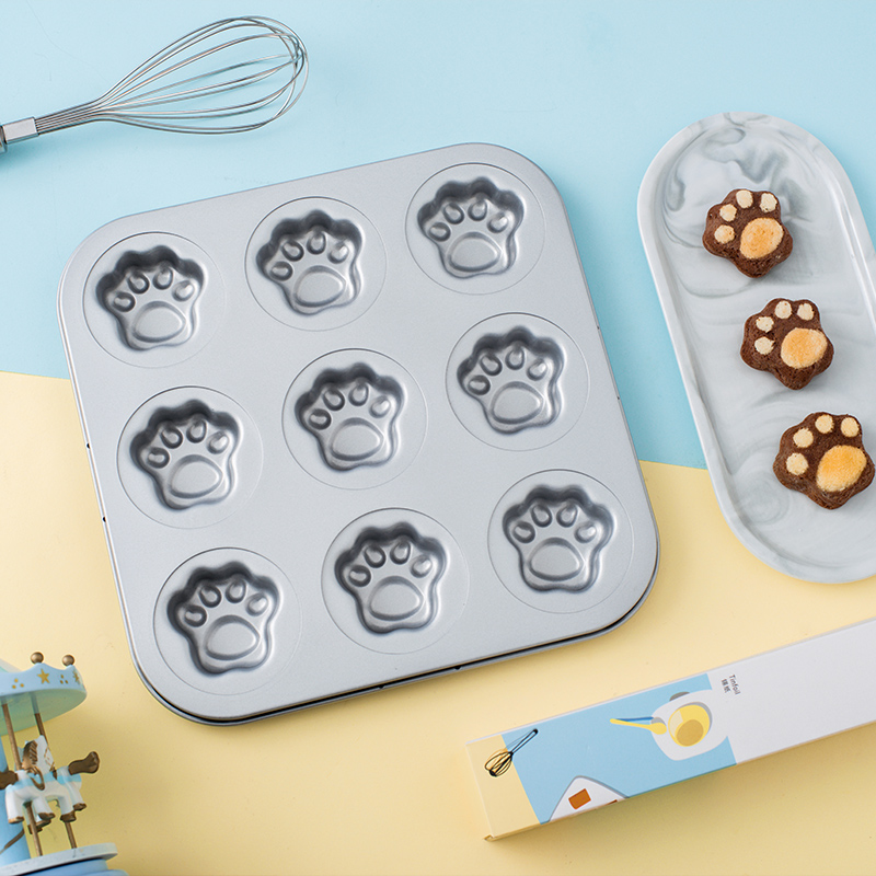 甜甜圈模具卡通动物儿童猫爪9连马芬小蛋糕烤盘烘焙家用烤箱工具