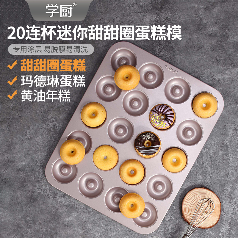 学厨20连迷你甜甜圈模具小蛋糕玛德琳烤盘不沾家用烤箱烘焙模具