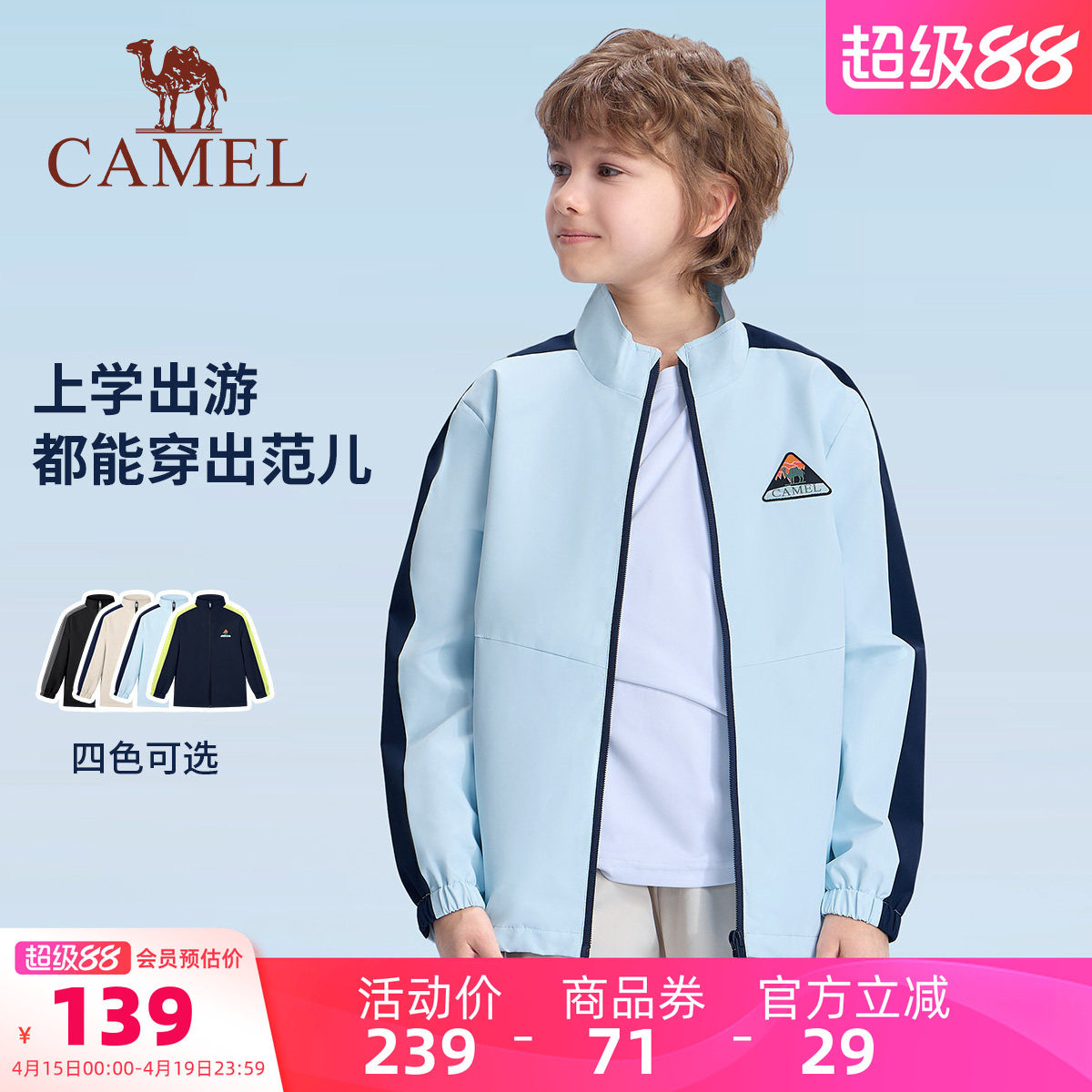 骆驼儿童夹克风衣保暖拉链户外连帽登山服中大童运动上衣男童外套