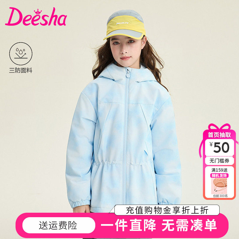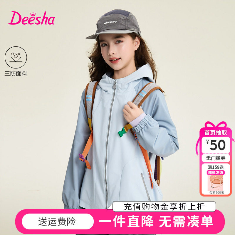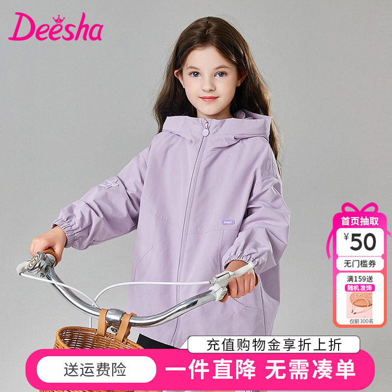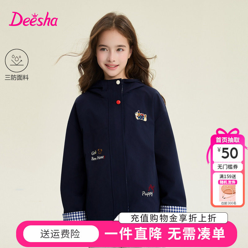 笛莎Deesha童装女童外套官方春季新款中大童时尚连帽风衣三防面料