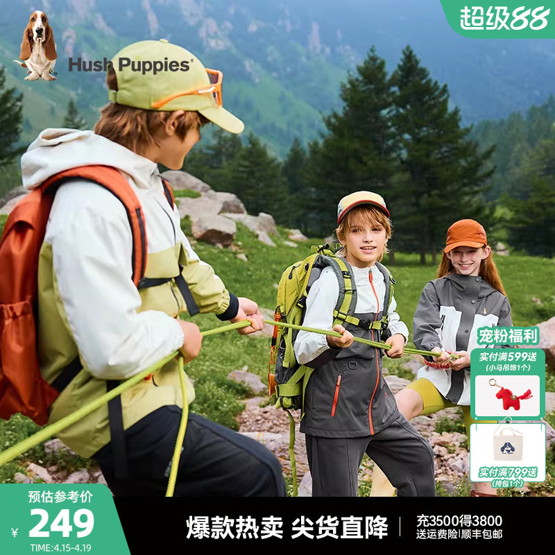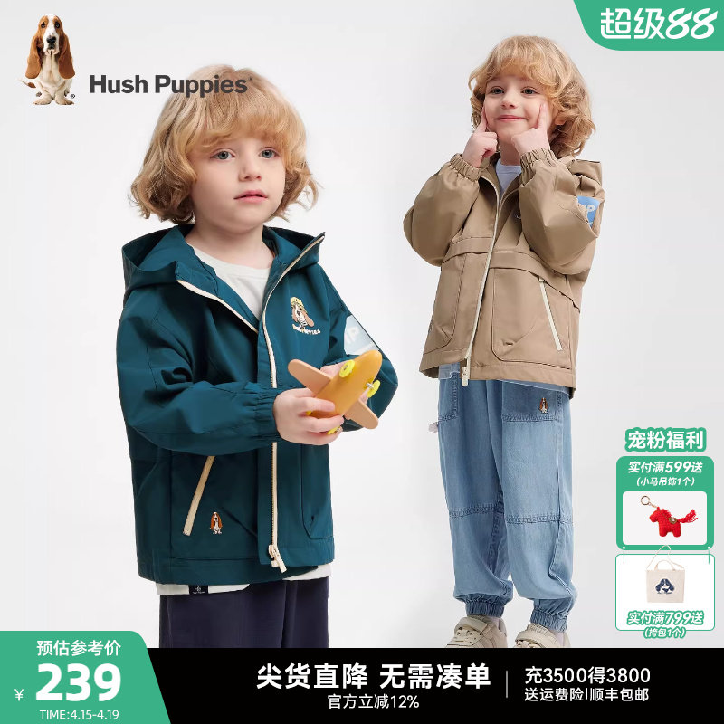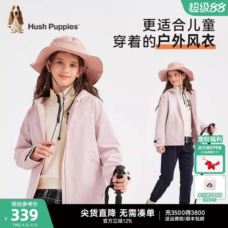 暇步士童装儿童三防风衣春秋新款大童户外男童连帽女童休闲薄外套