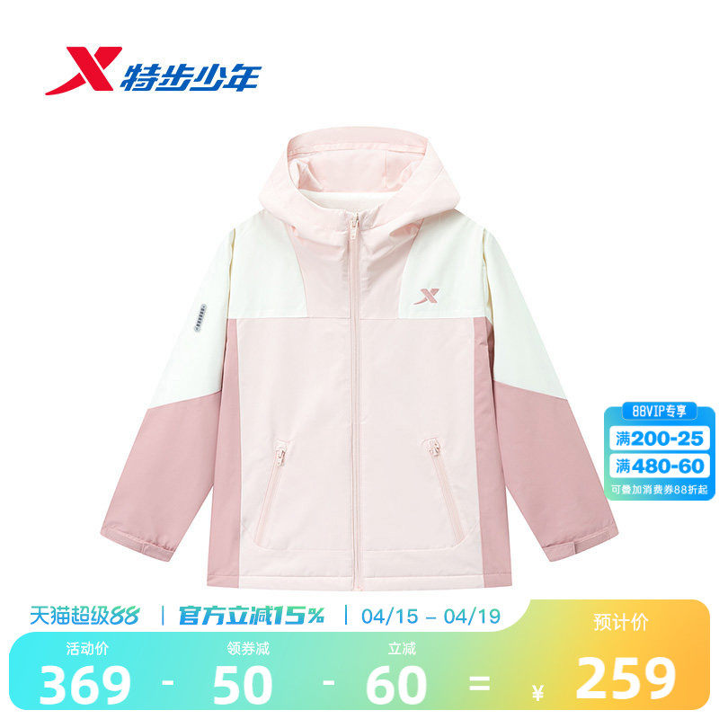 特步童装春秋季新款中大童学生保暖休闲连帽风衣儿童运动女童外套
