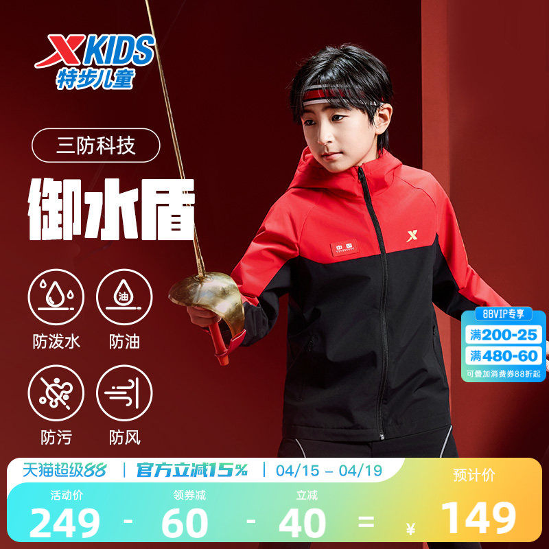 特步童装儿童外套男童夏季运动风衣薄款防晒衣青少年休闲上衣防风