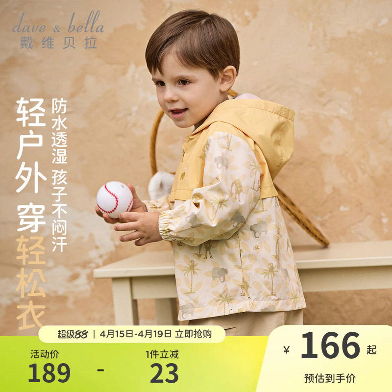 戴维贝拉儿童外套2026春装新男童防水透湿休闲户外运动连帽防风衣