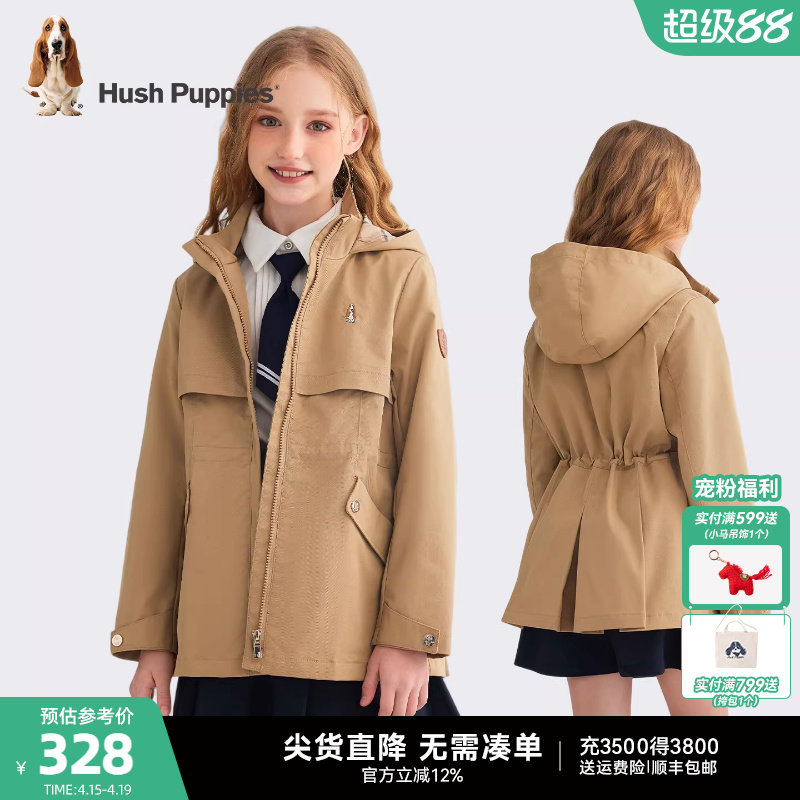 暇步士童装女童风衣春秋新品中大童宝宝户外服儿童学院风甜美外套